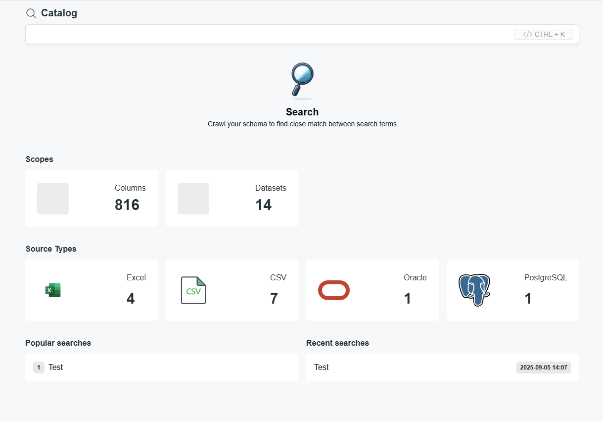 The catalog is the place where you can get an overview of the scopes of your sources registered in the platform.