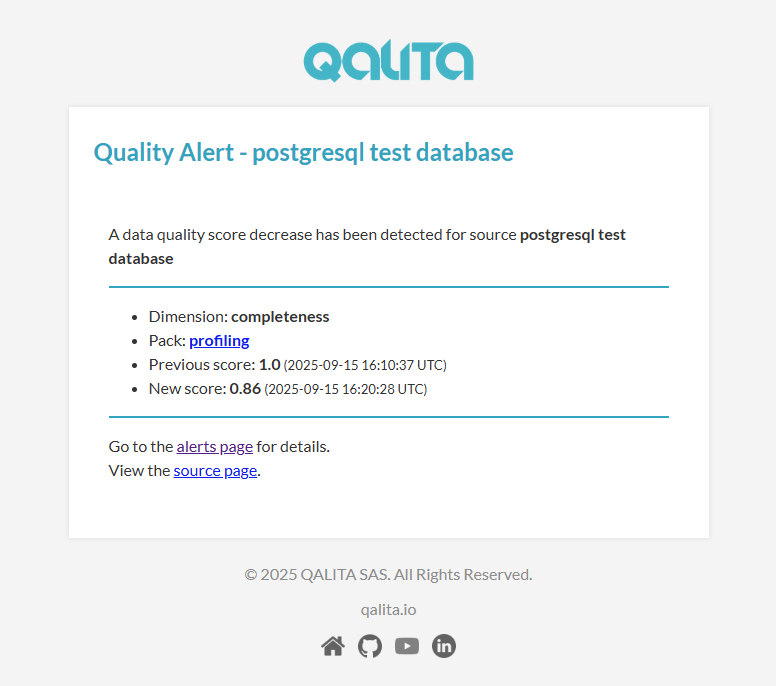 When a source score is decreasing after a new analysis is produced, an alert is generated.