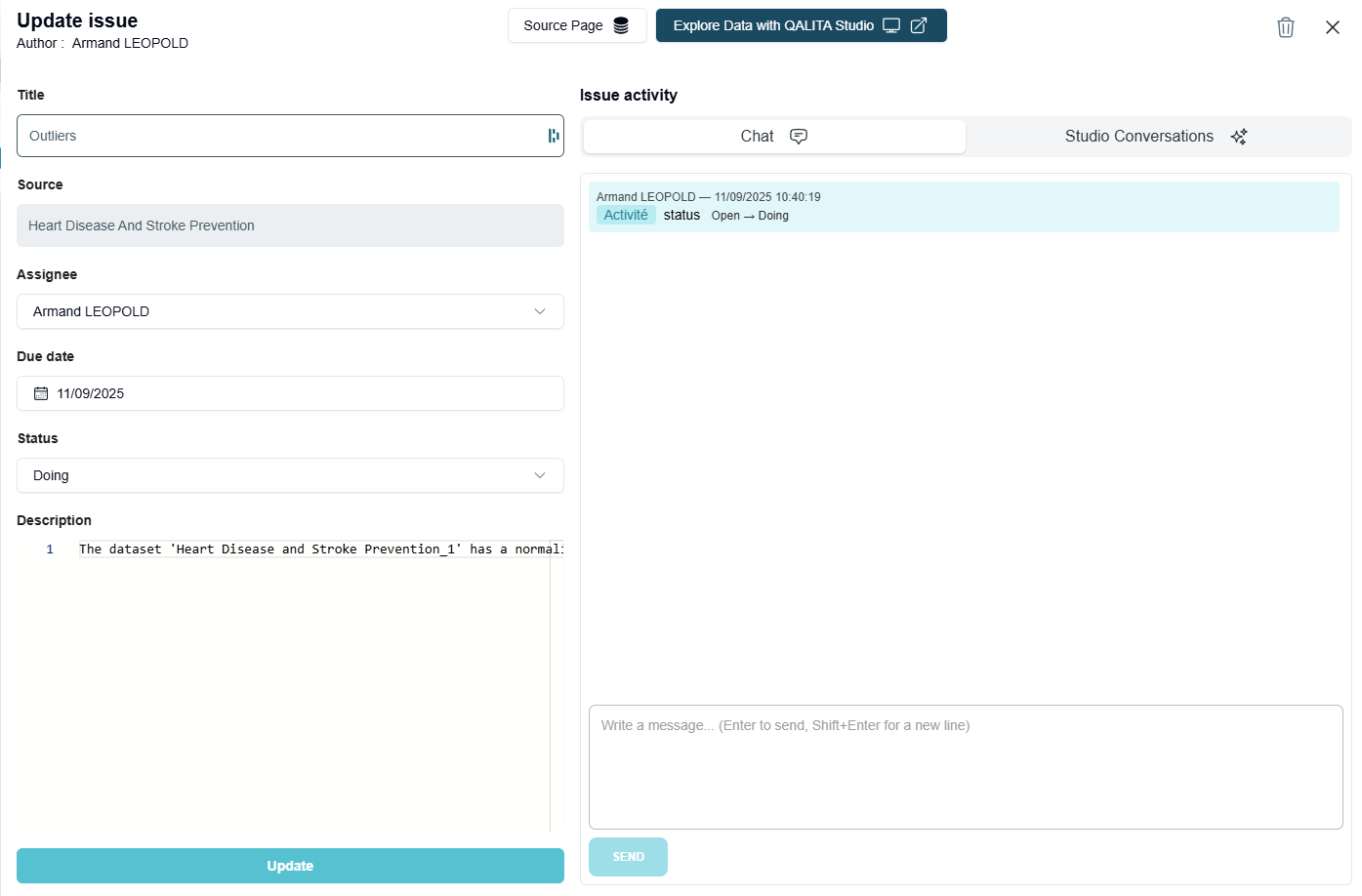 In the QALITA data management workflow recommendations can be converted into issues as a mean to organize work to be made to improve data quality.